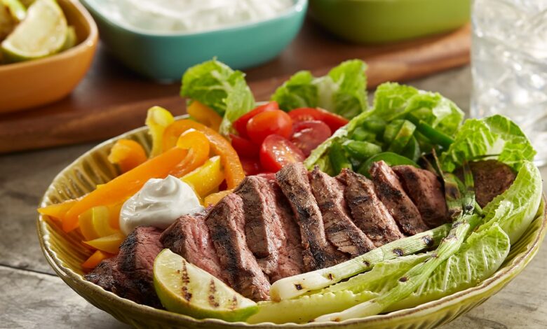 Grilled flank steak with natural lettuce, bell peppers, tomatoes, and a display of lime juice come joint in just minutes in this NEW lean & green recipe Fajita Beef Bowl. This family-friendly dish, developed by The Culinary Institute of America, only requires a grill simple, easy, and tasty. Each serving is one complete lean & green meal (1 lean, 3 green, 3 condiments)